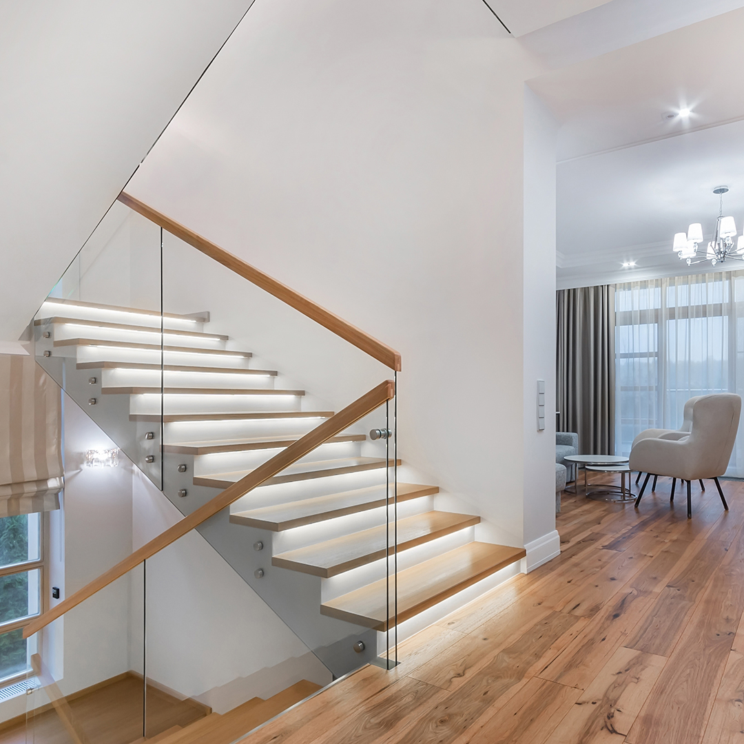 Spre deosebire de balustradele clasice din lemn sau metal opac, sticla permite continuitate vizuală și o integrare naturală în arhitectura contemporană, fără a încărca spațiul. În plus, combinația dintre sticlă securizată și elemente atent finisate – precum mâna curentă din lemn sau aluminiu – oferă atât confort, cât și un control estetic ridicat.