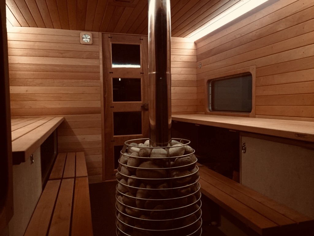 Nu trebuie scoasa din calcul ventilatia din sauna. Deoarece aceasta este un spatiu de mici dimensiuni, unde temperaturile sunt extrem de ridicate, este nevoie de o ventilatie pe masura care sa elimine riscul de aparitie a mucegaiului si sa ajute la eliminarea mirosurilor neplacute. Drept urmare, ai la dispozitie optiunea de a monta un ventilator pe peretele opus sau pe podeaua din interiorul saunei.