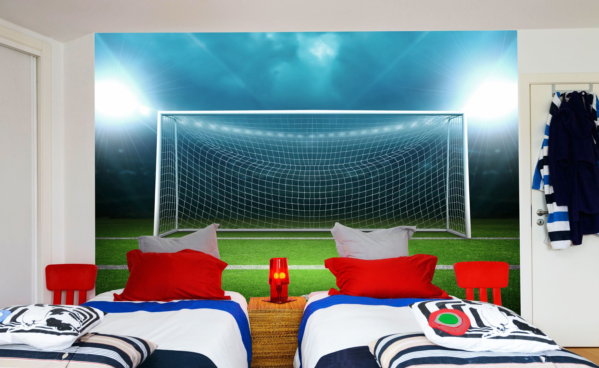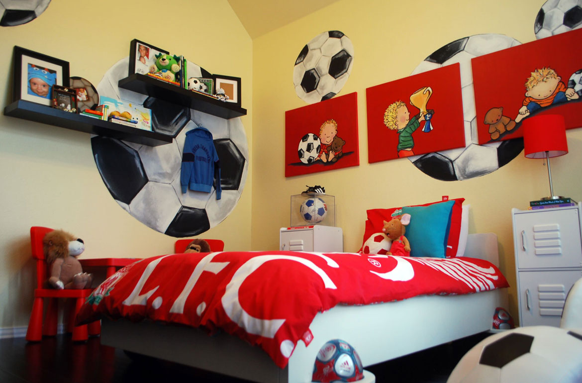 Folositi-va imaginatia cand alegeti elementele de decor din camera. Spre exemplu, daca copilului dvs ii place tenisul, puteti intinde o plasa la capul patului in loc de tablie. De asemenea puteti adauga palete de tenis in jurul plasei sau puteti infige mingi de tenis in agatorile pentru haine. Patul, in special cuvertura de pat, ar trebui sa intareasca si mai mult ideea principala din camera.