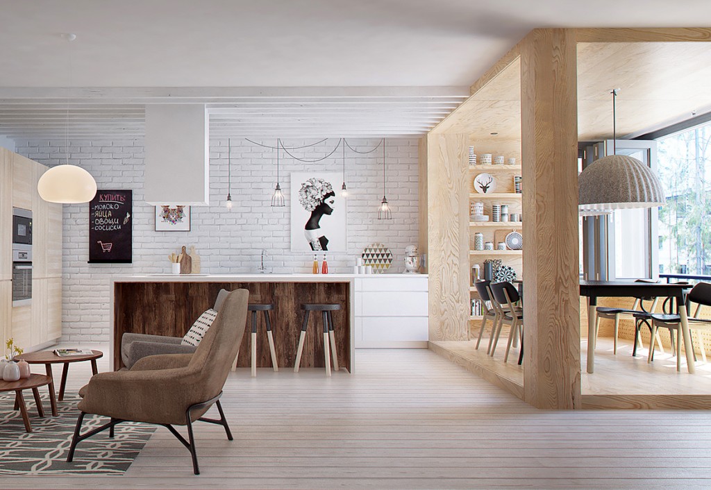 Cum sa mobilezi bucataria si camera de zi intr-un mediu unic