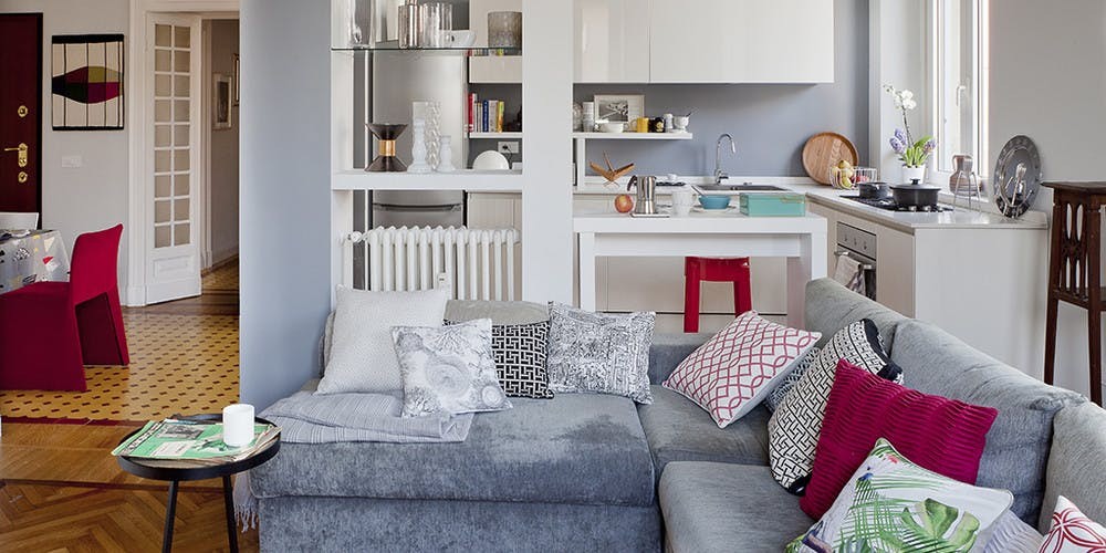 In perceptia spatiului, mobilierul joaca un rol fundamental si, mai ales intr-un spatiu deschis, este important sa se ia in considerare cu atentie alegerea cuiva de a exclude elementele deranjante. Desi bucataria este o zona foarte locuita a casei, camera de zi este cu atat mai mult si, in general, este bine sa ocupe un spatiu mai mare. O canapea confortabila si spatioasa este un apel imediat la relaxare si utilizarea acesteia ca element divizor este intotdeauna o solutie castigatoare.