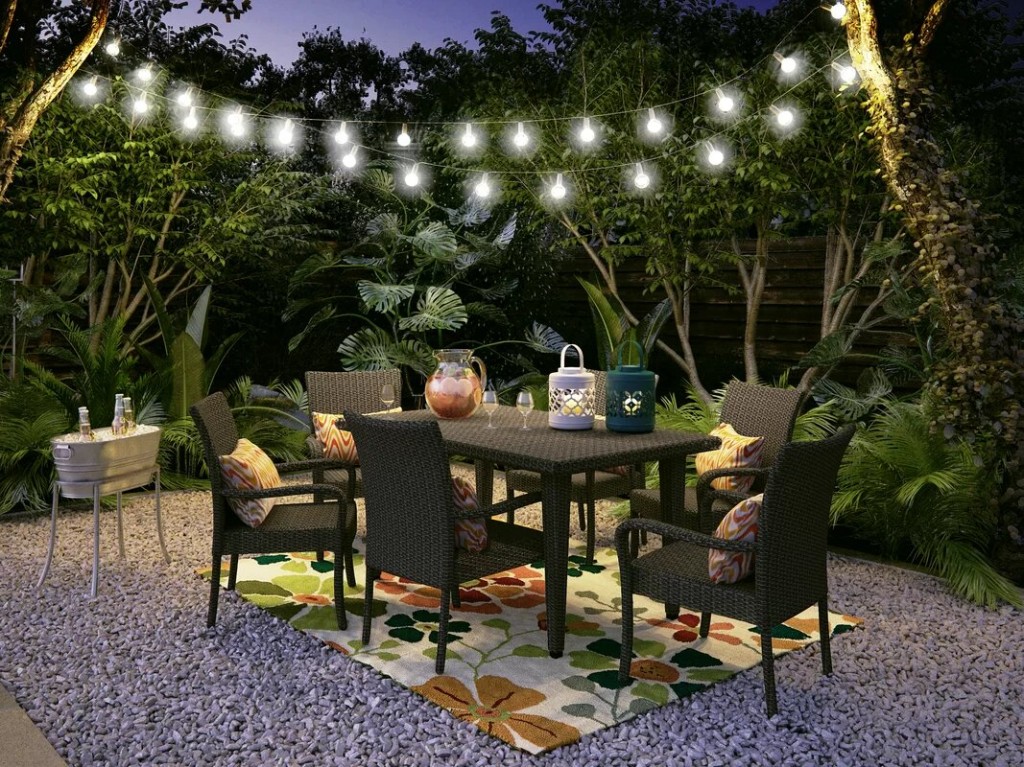 Prin definitie, curtea sau gradina dvs. are deja lumina necesara in timpul zilei, dar va avea nevoie de ajutor cand se intuneca. Adaugarea iluminatului va va permite sa exploatati pe deplin acest spatiu, dar este important sa-l alegeti pe cel potrivit in functie de atmosfera pe care doriti sa o creati: romantica, ideala pentru a fi alaturi de prieteni, gata pentru o petrecere etc. O recomandare poate fi lumina galbena, care intareste intotdeauna culorile, ofera un sentiment de intimitate si sunt, in general, ideale pentru exterior si intalniri sociale. Atingerea jucausa poate veni cu o serie de pandantive sau chiar cu o piesa minimalista.
